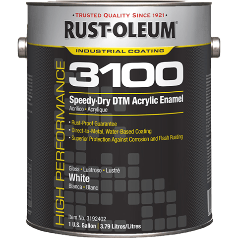 For projects that require minimal downtime, choose Rust-Oleum High Performance 3100 System Speedy-Dry DTM Acrylic Enamel. This water-based, high-gloss acrylic provides time-saving one-coat coverage and dries ultra-fast. Delivers long-lasting colour and gloss.