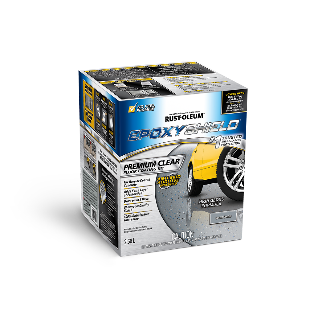 Brighten your garage with a clean, glossy, showroom-quality floor. EPOXYSHIELD® Garage Floor Coating Kit applies in one easy coat and protects against gasoline, antifreeze, motor oil, salt, hot tire pick-up and cracking—for years to come.